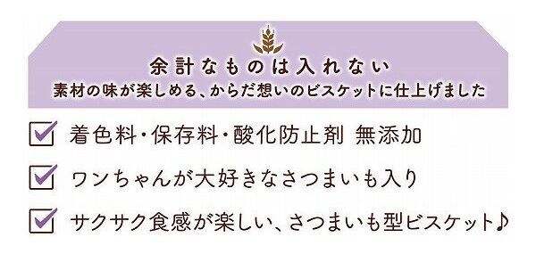 ・素材の味が楽しめる、からだ想いのさつまいも入りビスケットに仕上げました。