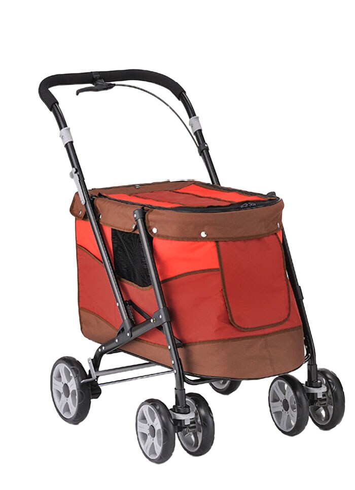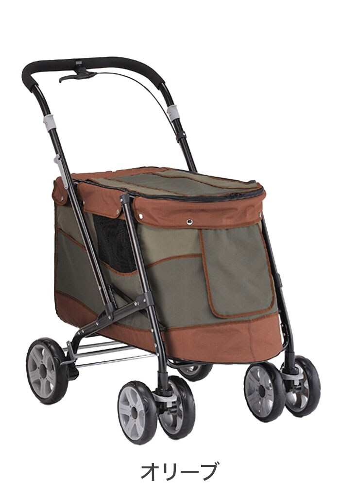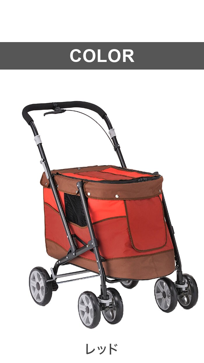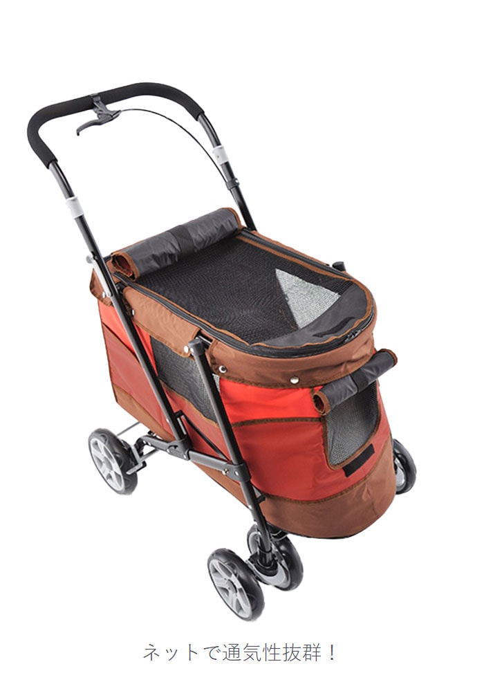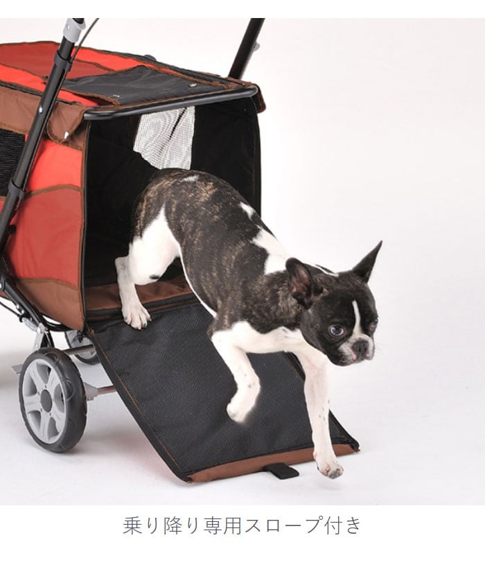・ハンドブレーキ付だから安心!前後輪にはサスペンションがついているので、振動にも強い!ペット乗り降りが楽にできるように、後面に乗り降り用スロープがあります。