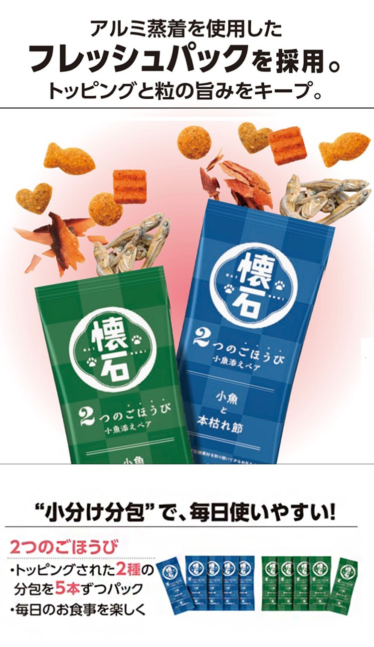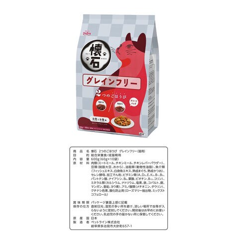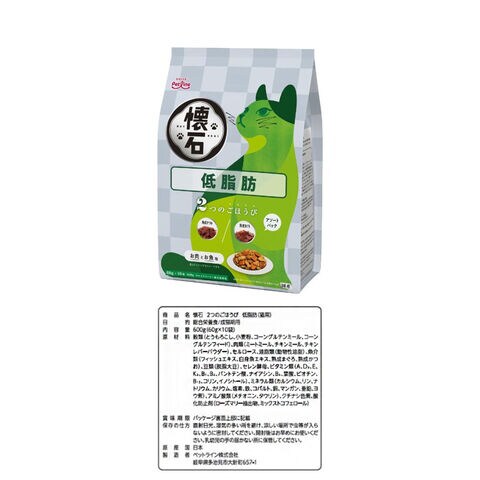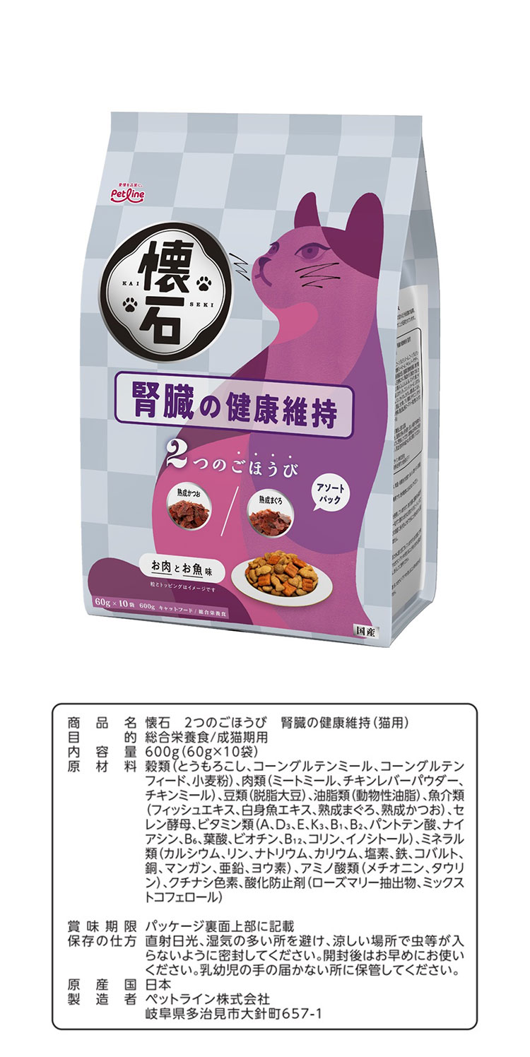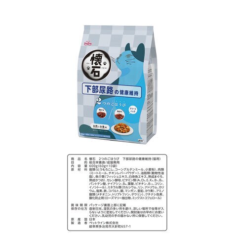 【5個セット】 ペットライン 懐石 2つのごほうび 機能性タイプ 600g 国産 日本製 小分けパック 猫用 猫 キャットフード ドライ フード 総合栄養食 ご褒美 ごほうび おやつ【ポイント10倍】 【送料無料】