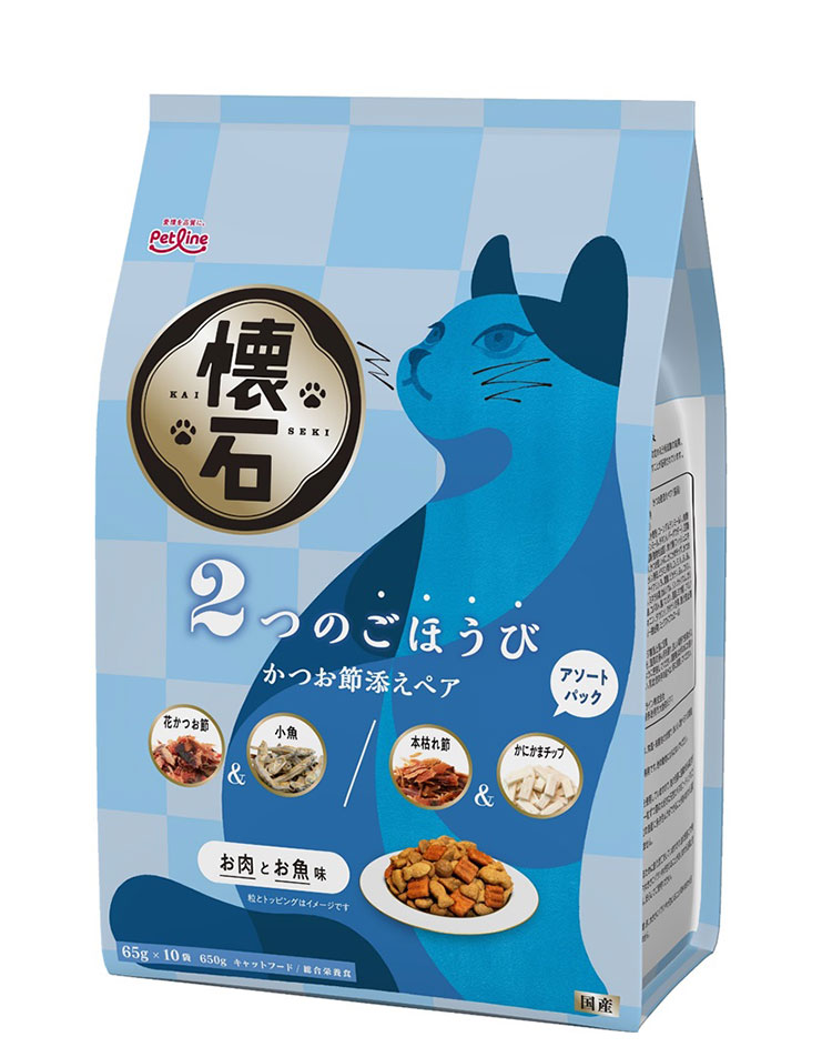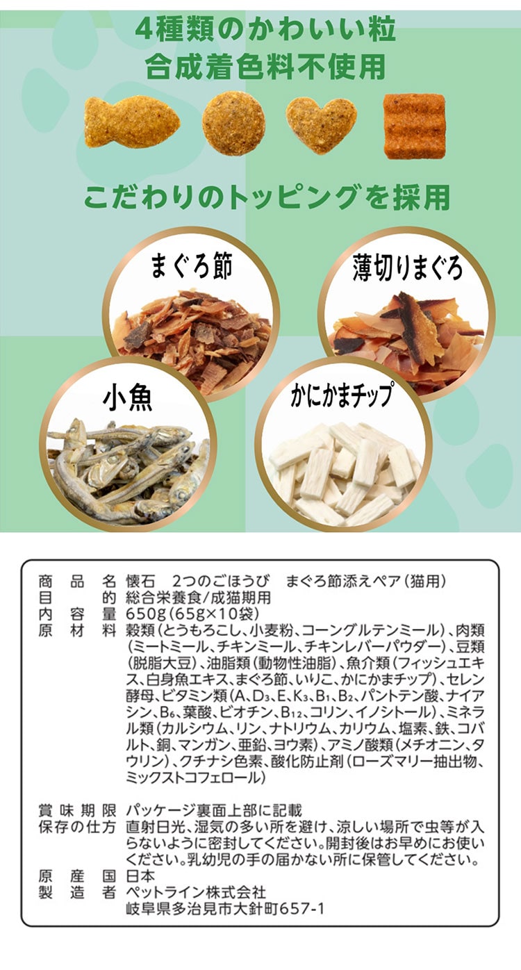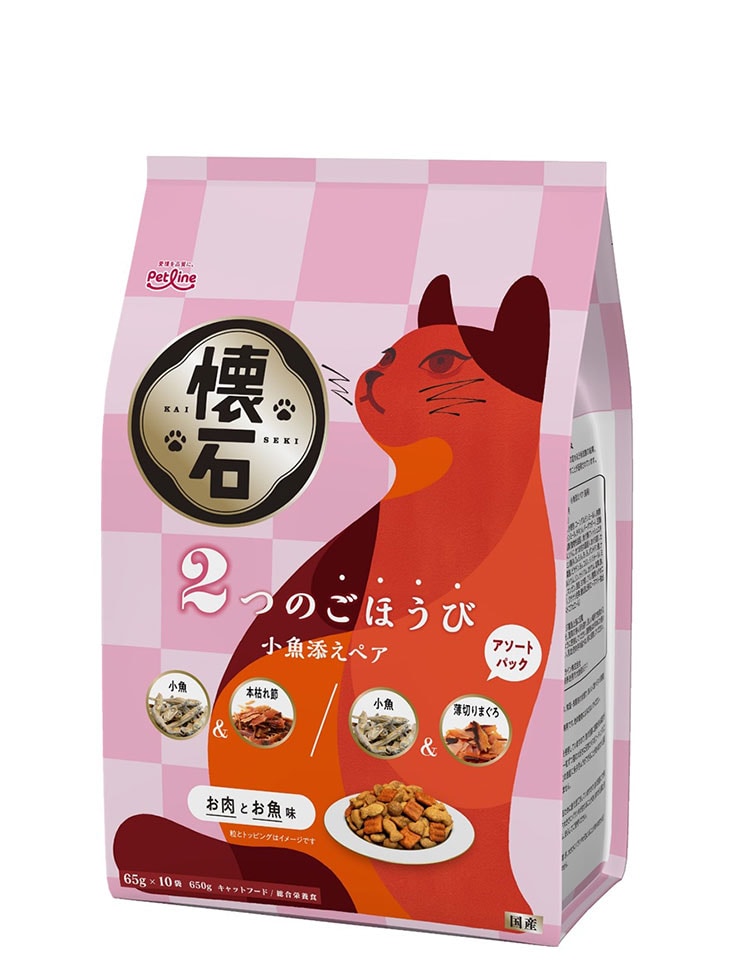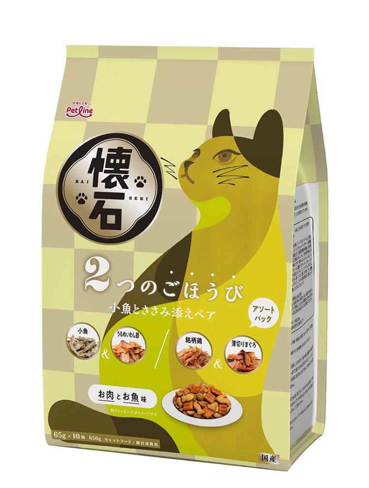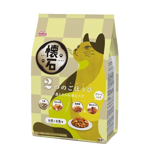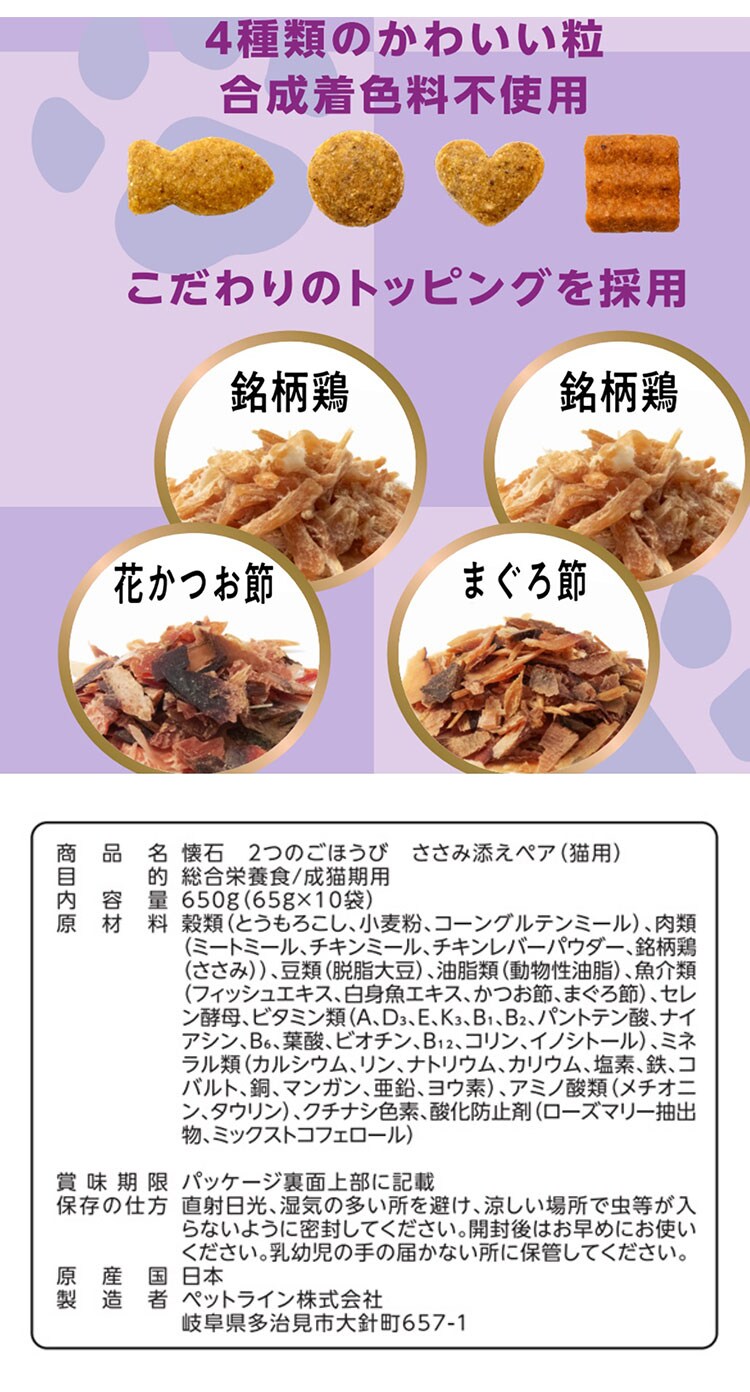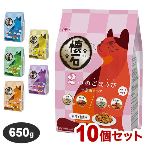 【10個セット】 ペットライン 懐石 2つのごほうび フレーバータイプ 650g x10 6.5kg 国産 日本製 小分けパック 猫用 猫 キャットフード ドライ【送料無料】