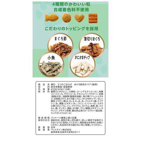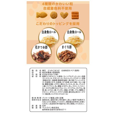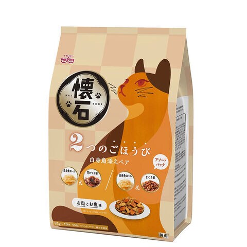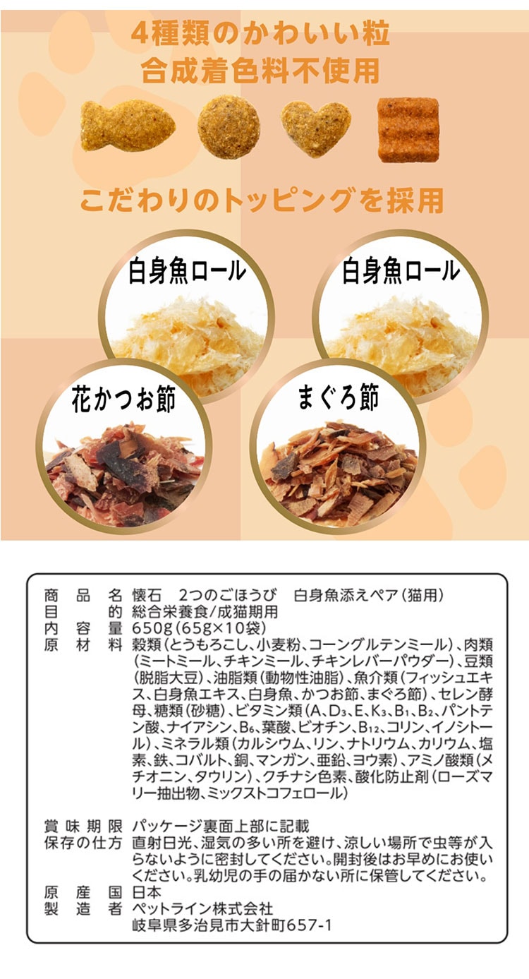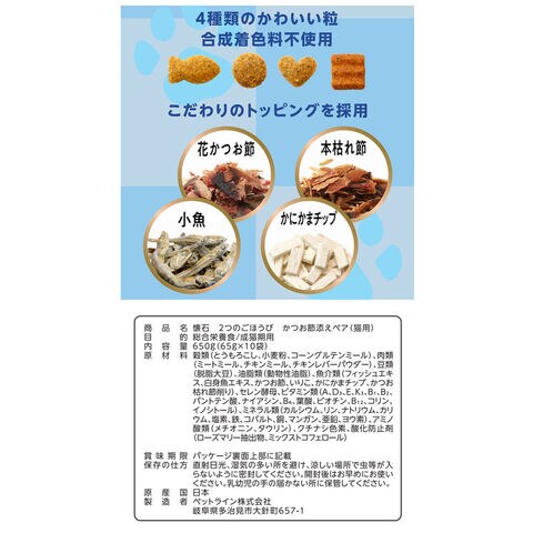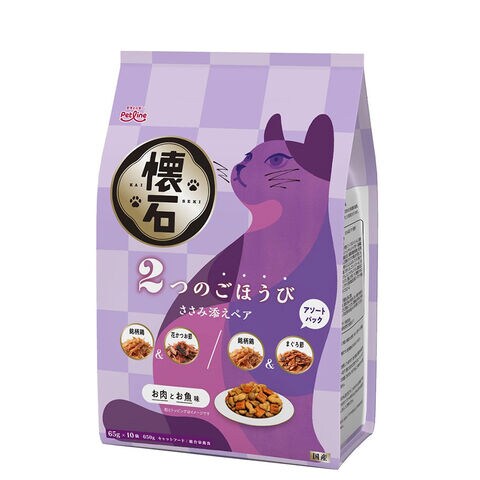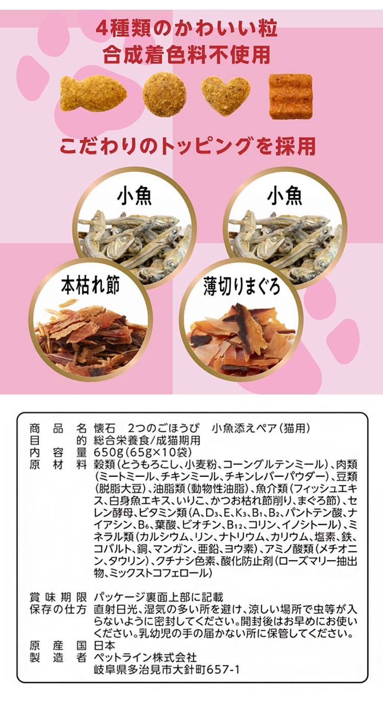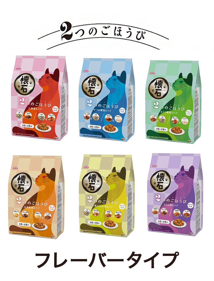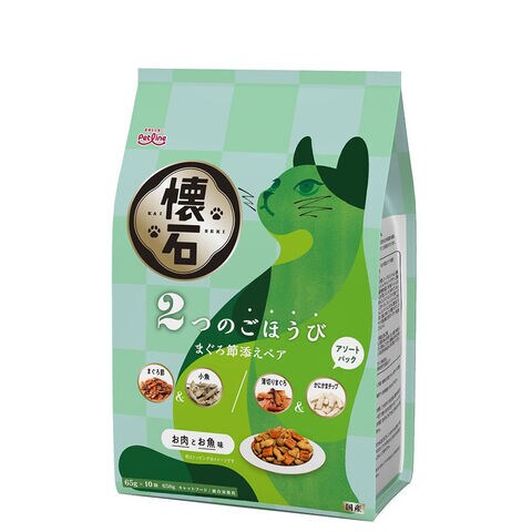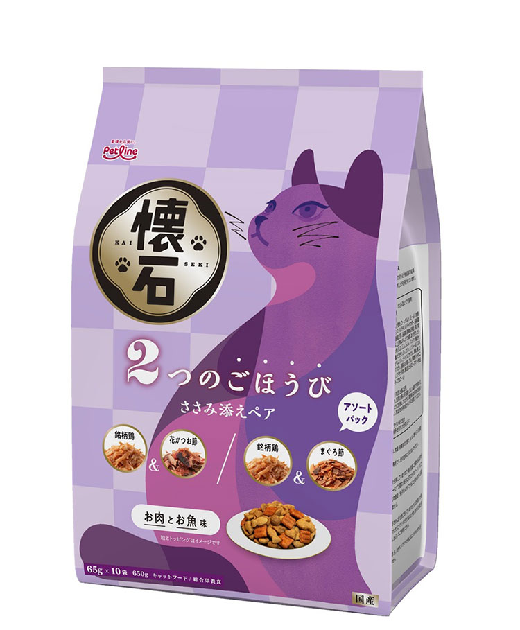 【10個セット】 ペットライン 懐石 2つのごほうび フレーバータイプ 650g x10 6.5kg 国産 日本製 小分けパック 猫用 猫 キャットフード ドライ【送料無料】