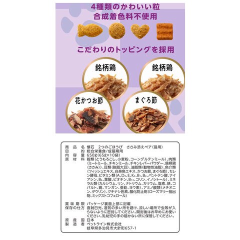 【10個セット】 ペットライン 懐石 2つのごほうび フレーバータイプ 650g x10 6.5kg 国産 日本製 小分けパック 猫用 猫 キャットフード ドライ【送料無料】のレビュー