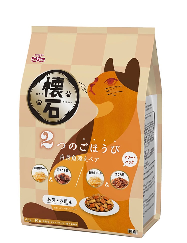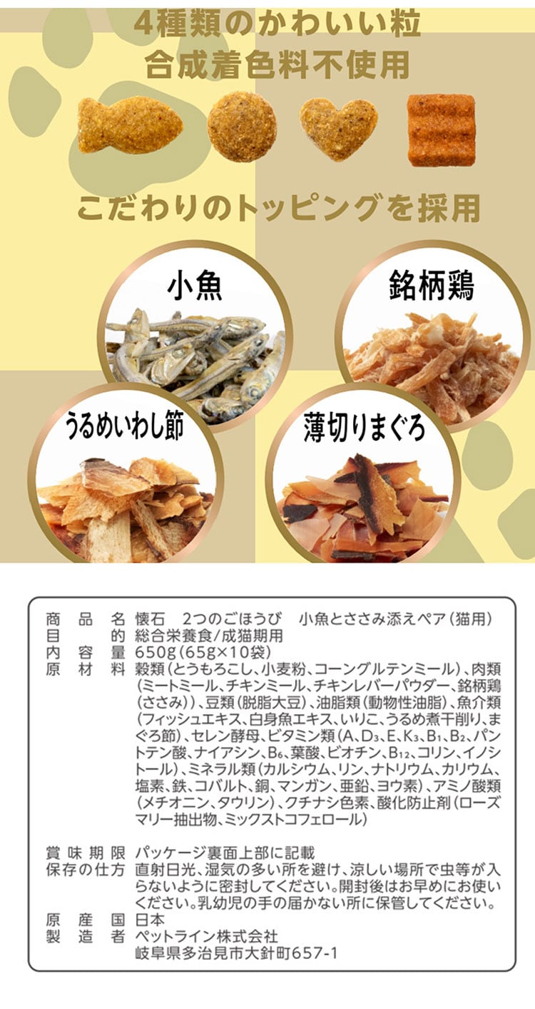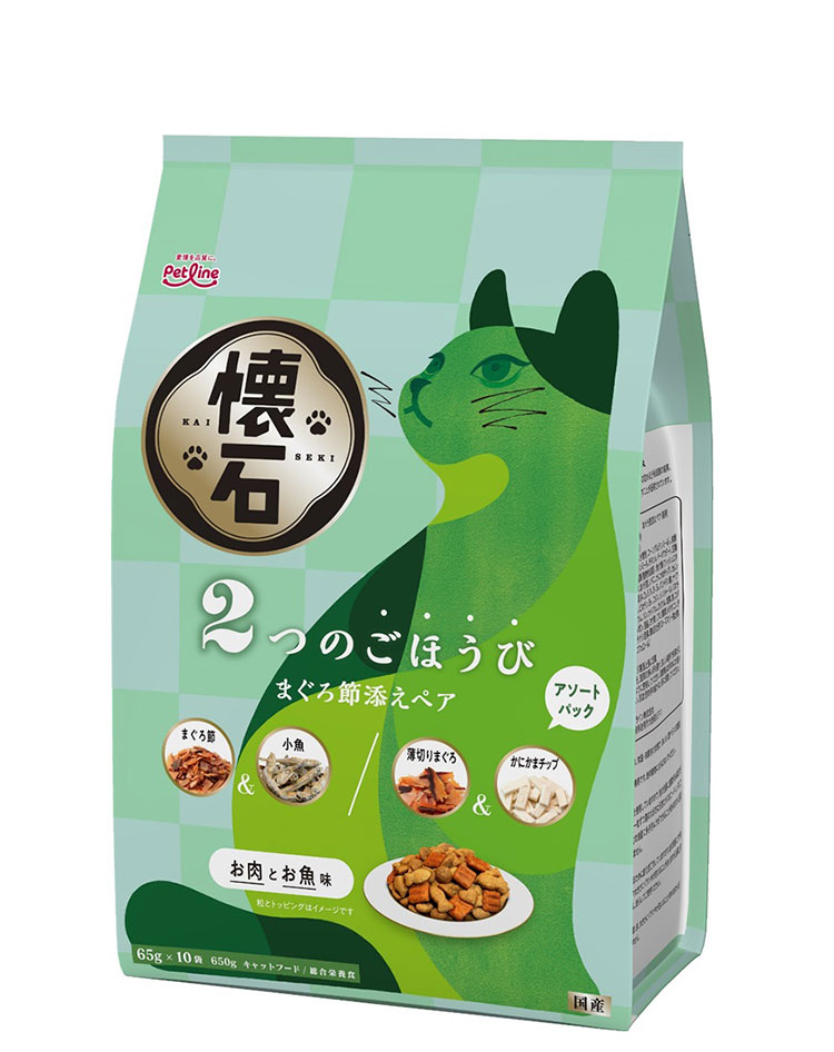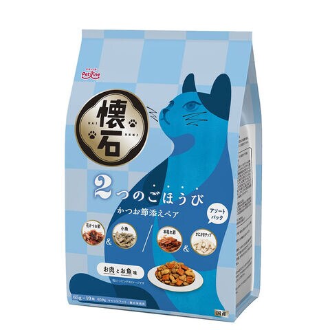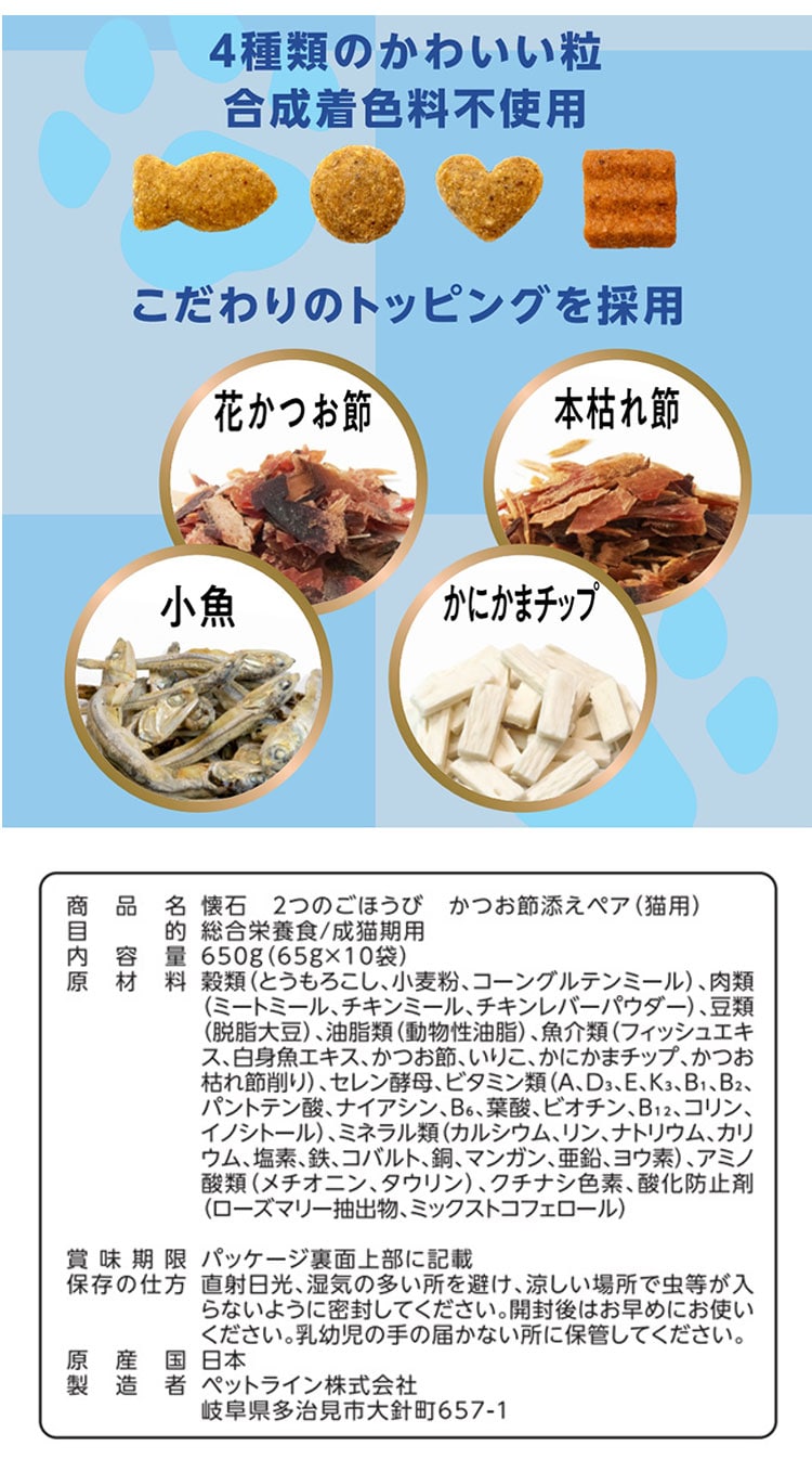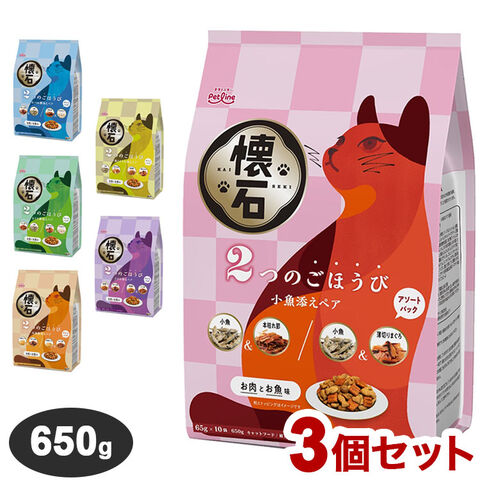 【3個セット】 ペットライン 懐石 2つのごほうび フレーバータイプ 650g x3 1.95kg 国産 日本製 小分けパック 猫用 猫 キャットフード ドライ【送料無料】