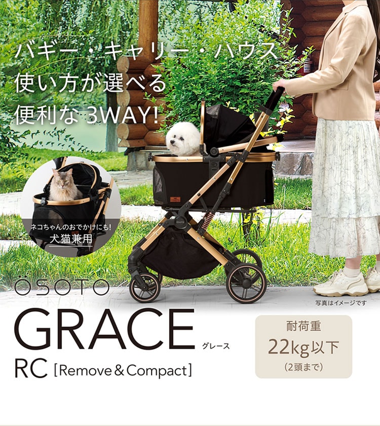 ジェックス OSOTO GRACE RC ペットカート カート キャリー バスケット取り外し 着脱式 折りたたみ コンパクト バギー ハウス オソト グレース 通院 お出かけ お散歩 旅行 犬用 小型犬 猫用 多頭 GEX 【送料無料】
