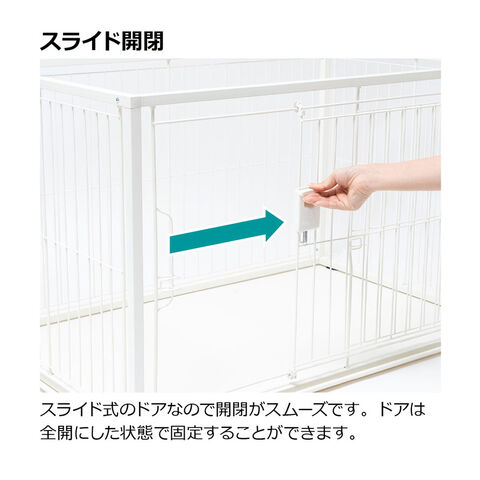 スライド式のドアなので開閉がスムーズです。ドアは全開にした状態で固定することができます。