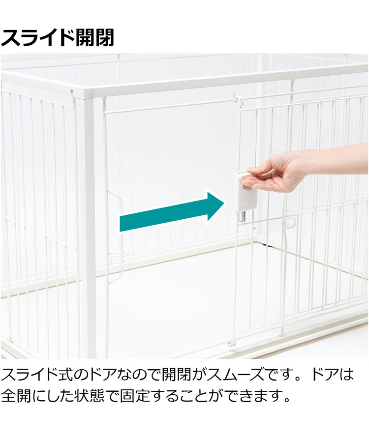 スライド式のドアなので開閉がスムーズです。ドアは全開にした状態で固定することができます。
