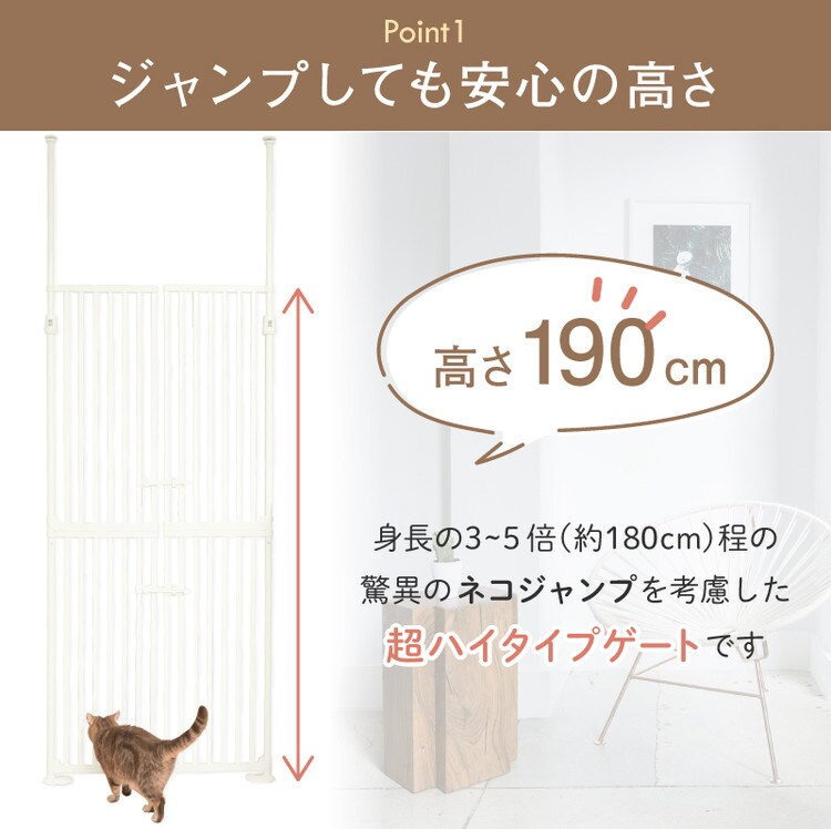 wanyanya にゃんドア 猫用ゲート ペットゲート 脱走防止 高さ190~250cm 幅85~92.5cm ドア付 突っ張り フェンス ゲート 飛び出し防止 柵 安全柵 扉 ドア 窓 廊下 玄関 ベランダ 猫用 わにゃにゃ【送料無料】