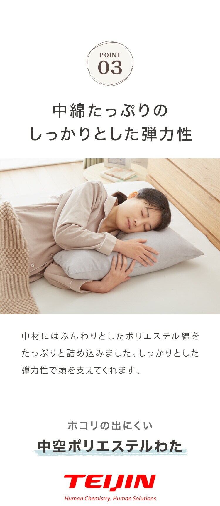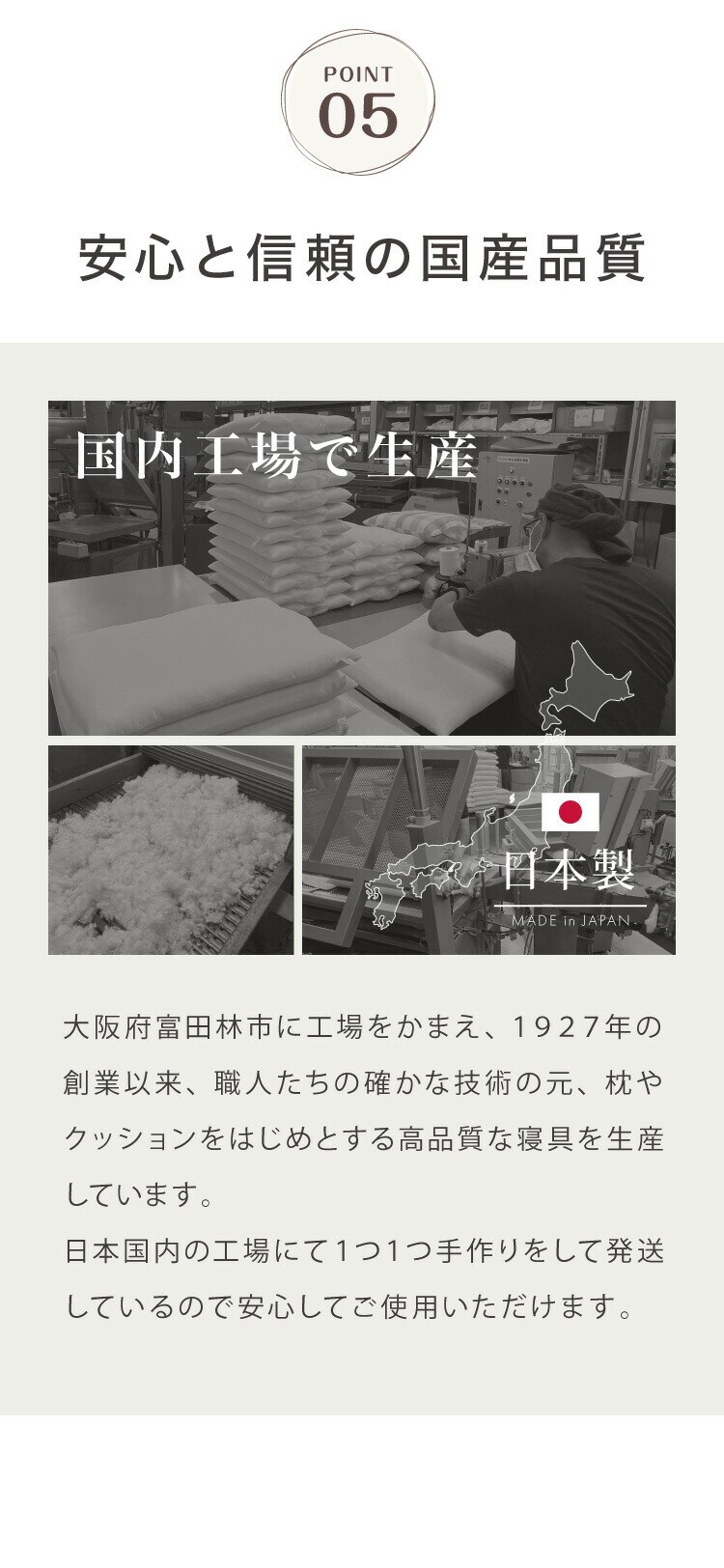 中綿には弾力性にすぐれており、中心部が空洞で通気性がよく、綿ほこりがでにくいのでアレルギーの原因になりにくい帝人のクリスター綿を使用してます。