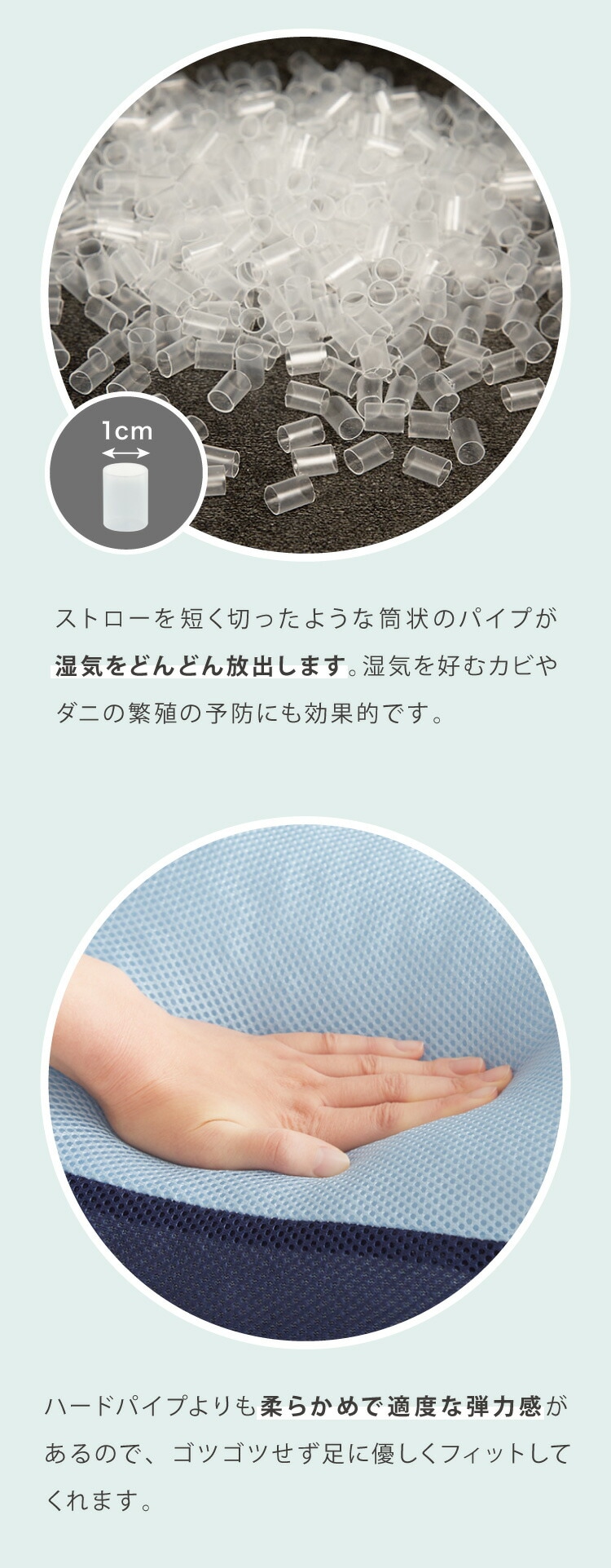 ソフトパイプを使用しているため抜群の通気性・洗える清潔さが強みになっています。