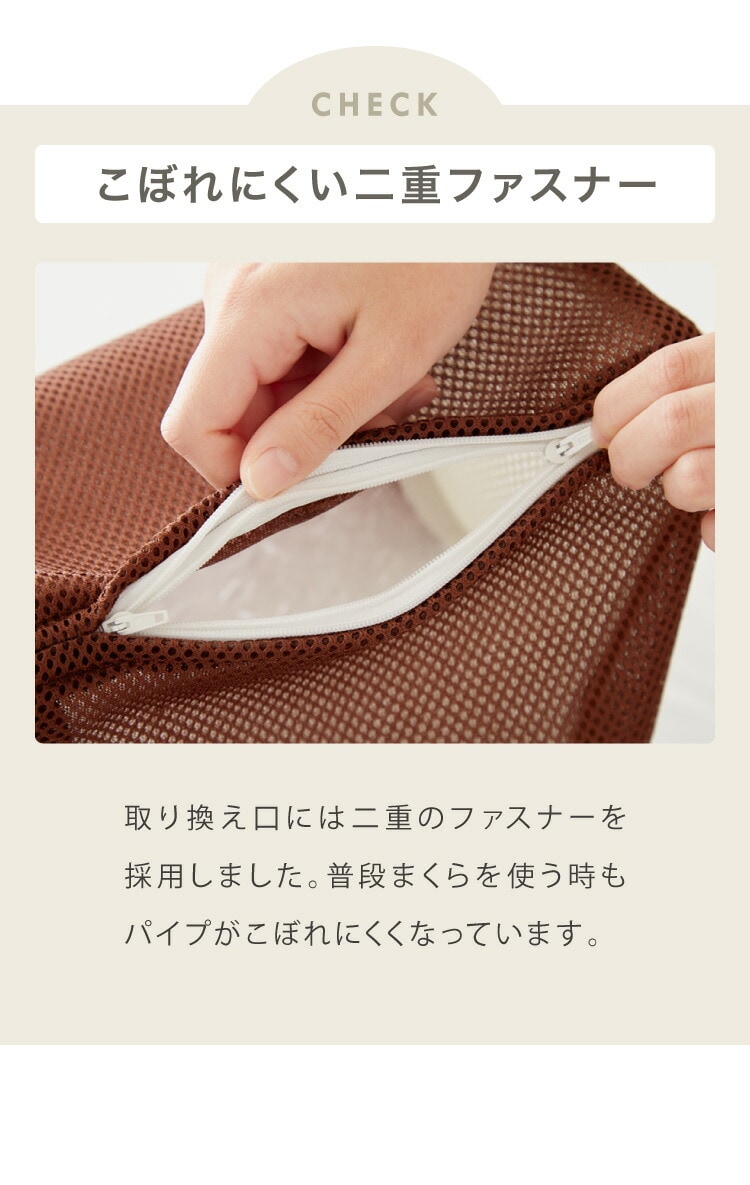 二重ファスナー式になっているので簡単にパイプの量の調整が可能です。