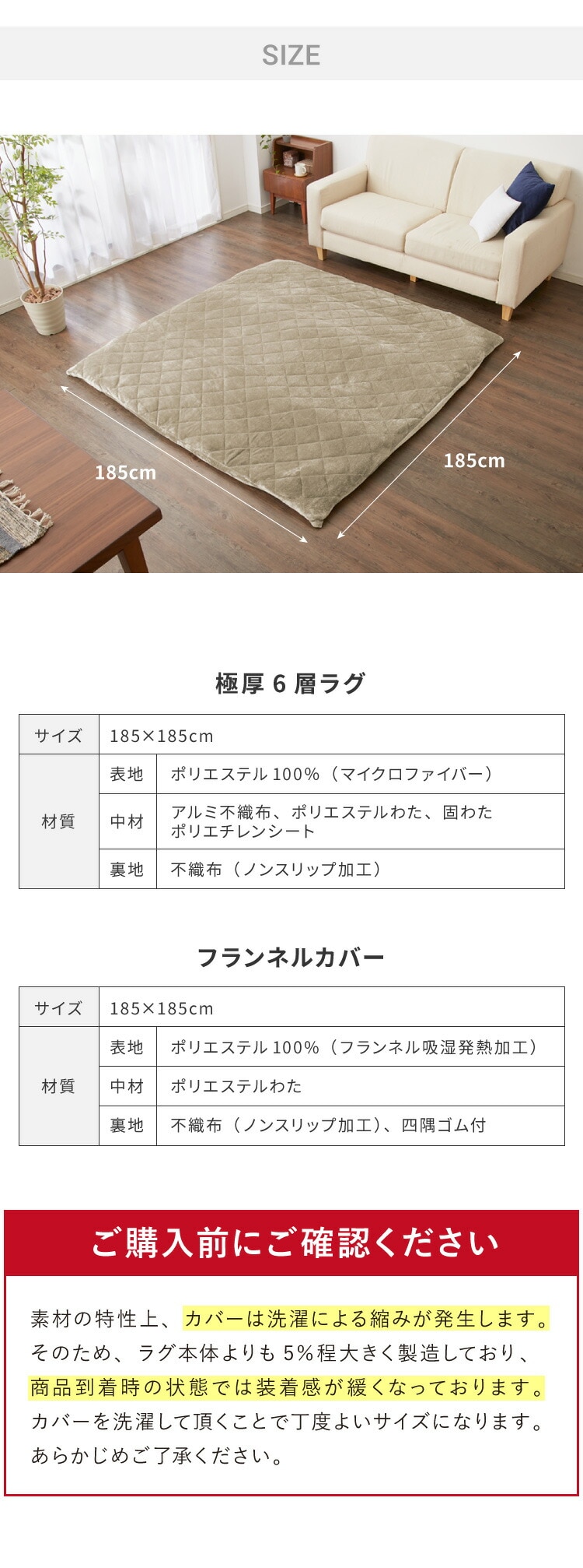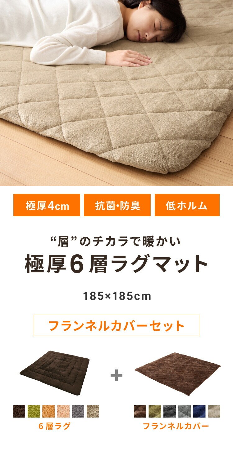 【ラグカバーセット】 極厚6層ラグ 185×185cm 滑り止め付 正方形 6層 約4cm厚 極厚 多層構造 リビング ラグ ラグマット 絨毯 カーペット 抗菌 低ホルマリン 防臭 省エネ【送料無料】