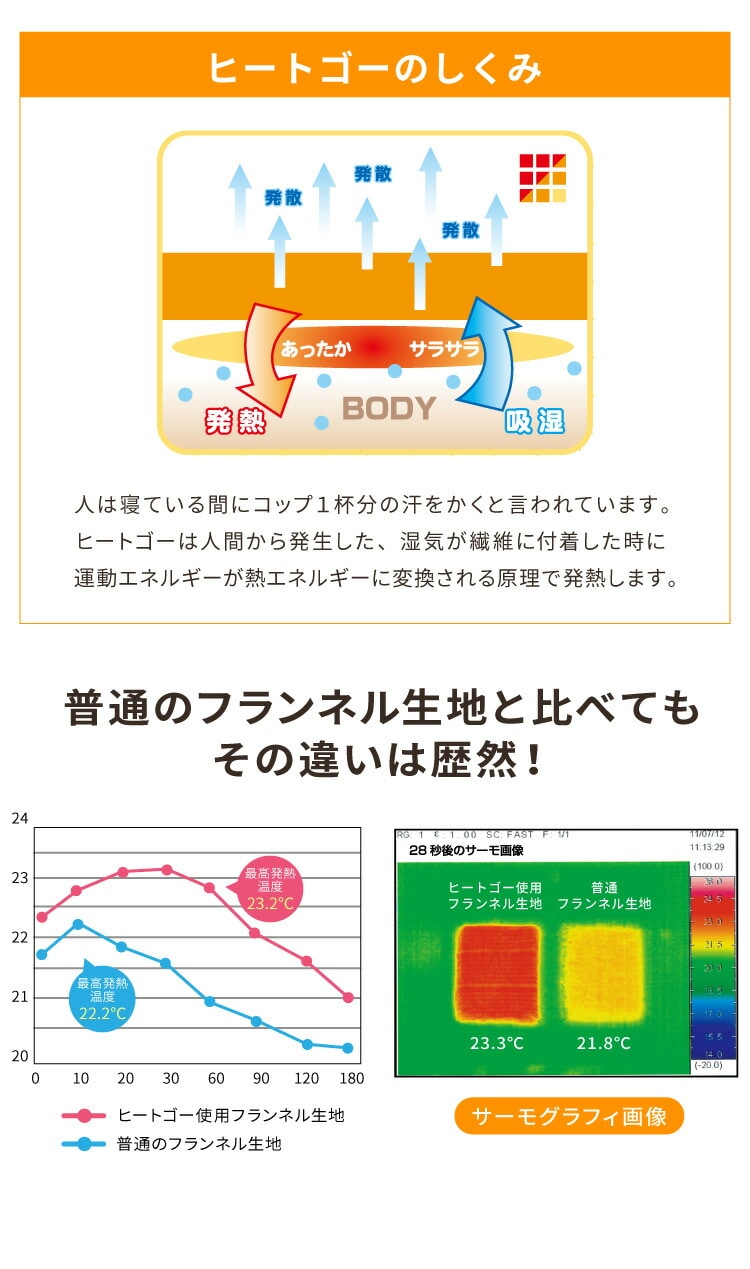 表地:ポリエステル100%(フランネル吸湿発熱加工)
