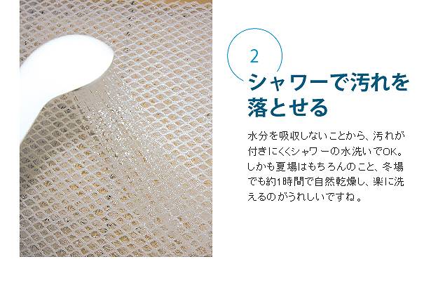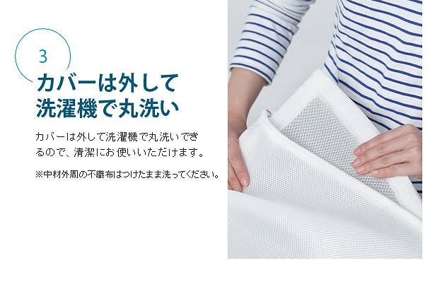 【お手入れについて】部分的にへたりが発生した場合、カバーをはずし中材(立体構造編物)に直接ドライヤーの熱風をあてることで復元できます。