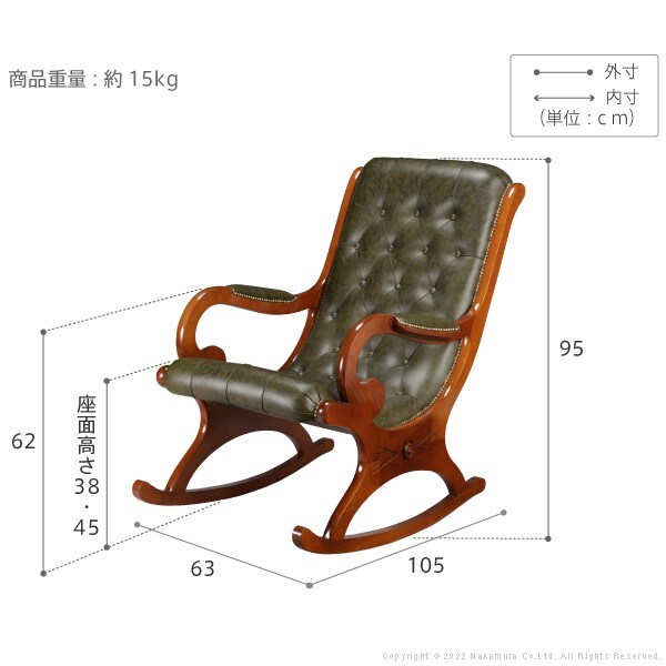 完成品 イタリア製 ヴェローナ クラシック ロッキングチェア 革張り チェア パーソナルチェア イス 高齢者 北欧 アンティーク おしゃれ レトロ 肘付き アーム付き【送料無料】のレビュー