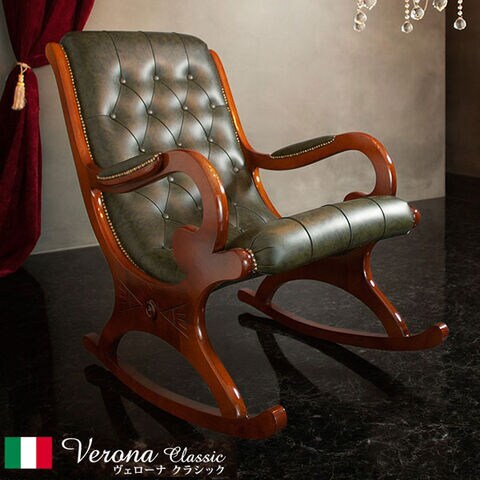 完成品 イタリア製 ヴェローナ クラシック ロッキングチェア 革張り チェア パーソナルチェア イス 高齢者 北欧 アンティーク おしゃれ レトロ 肘付き アーム付き【送料無料】