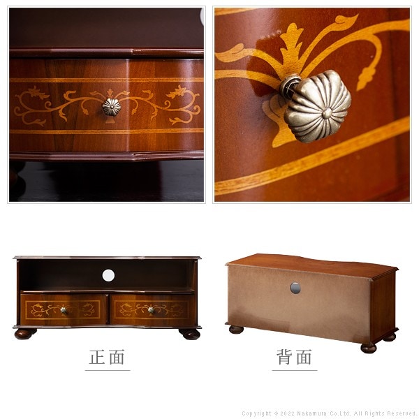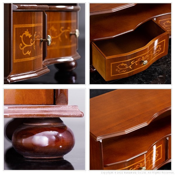 象嵌細工や彫刻、やわらかな曲線を描く前板や猫脚など、イタリア伝統の技とスタイルをご堪能頂けます。