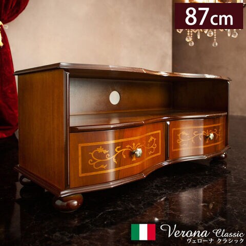 完成品 イタリア製 ヴェローナ クラシック 丸脚 テレビボード ローボード 幅87 スリム おしゃれ アンティーク 北欧 収納 引き出し付き テレビラック オープンラック【送料無料】