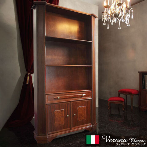 完成品 イタリア製 ヴェローナクラシック オープンキャビネット 幅98 ハイタイプ オープンラック 扉付き 棚 収納棚 おしゃれ 木目調 天然木 収納 本棚 ブックラック【送料無料】