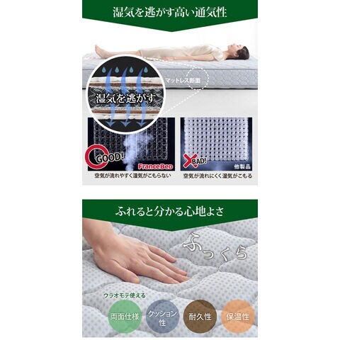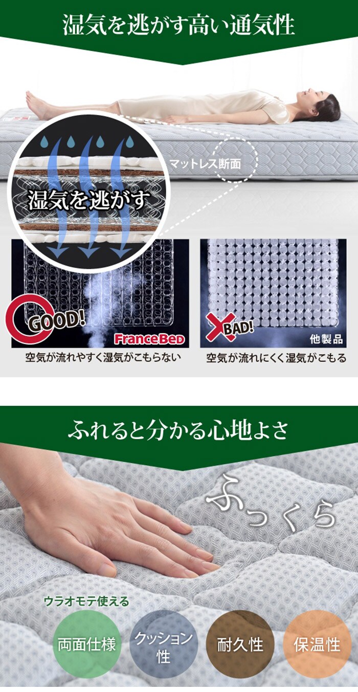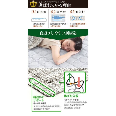 フランスベッド ツインサポートスプリングマットレス ダブル 高密度連続スプリングマットレス 防ダニ 抗菌 防臭 寝具 日本製 国産 マットレスのみ ツインサポート【送料無料】