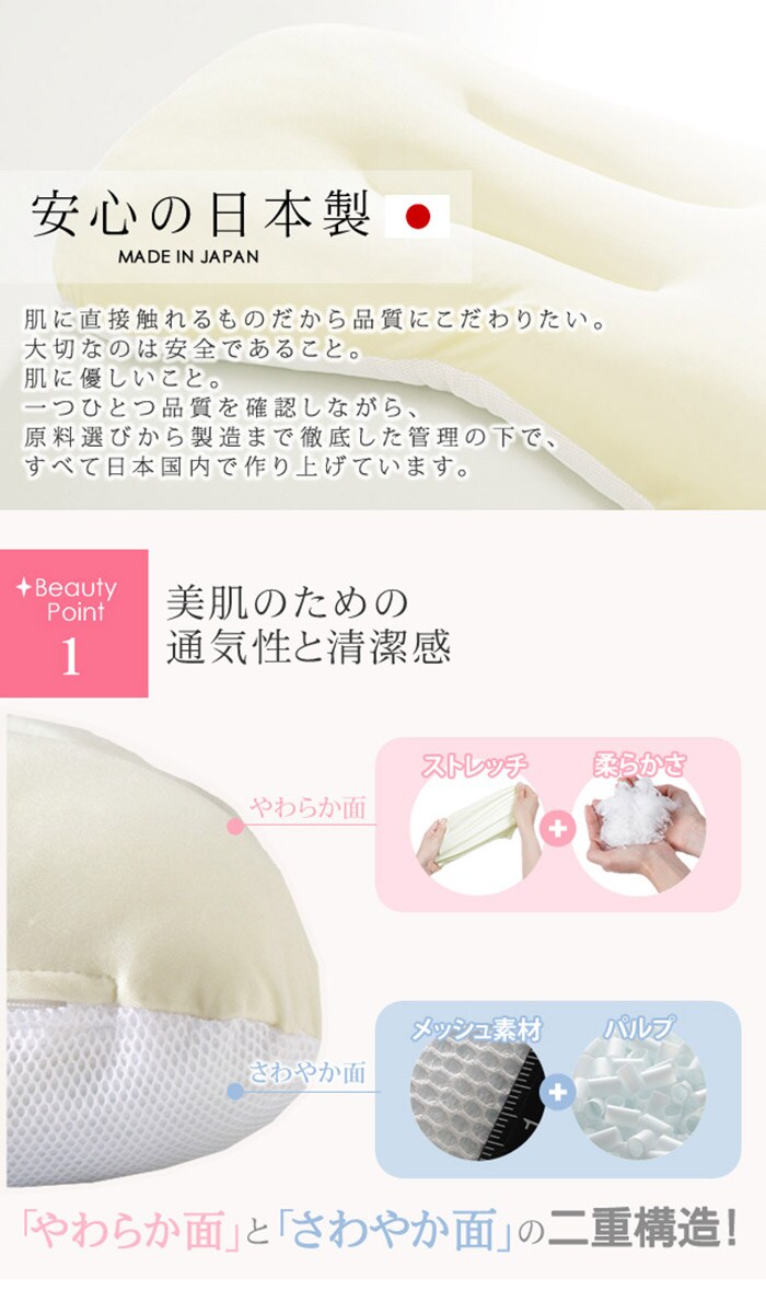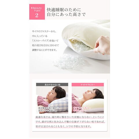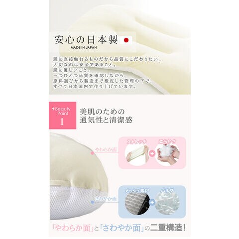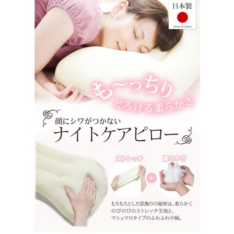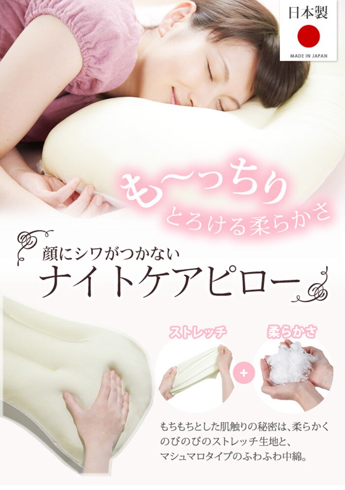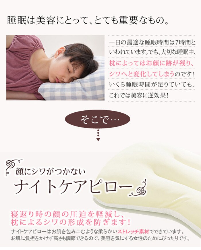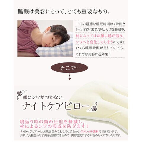 顔にシワがつかない ナイトケアピロー 43×63cm 枕 首 肩 しわ 眠りシワ 美肌 女性 柔らかい エイジングケア スキンケア 快眠 熟睡 寝返り 美容 健康 洗える 清潔 通気性 高さ調節 日本製【送料無料】