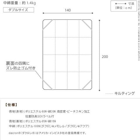 中綿:ポリエステル100%(ダクロンメモレル、ダクロンアクア)