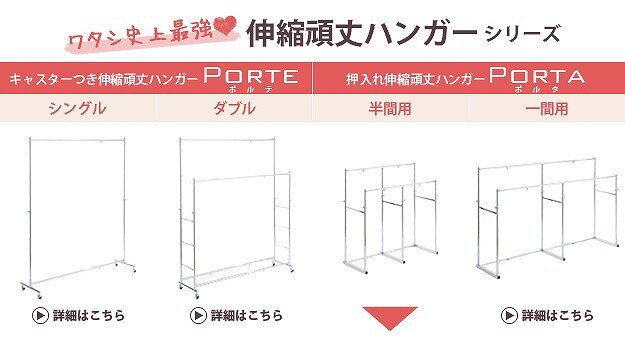 押入れ 収納 ハンガーラック ポルタ 幅60~100cm パイプ 伸縮式 頑丈 ハンガー 半間用 衣類収納 洋服 耐荷重90kg 丈夫 スチール製【送料無料】