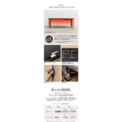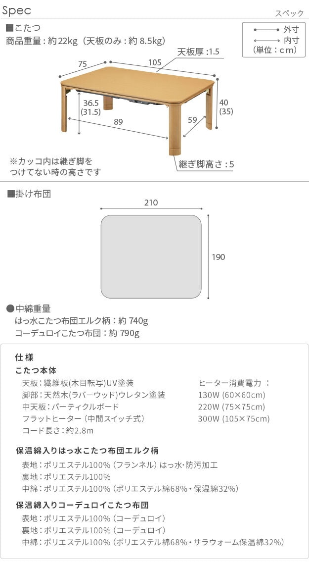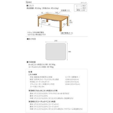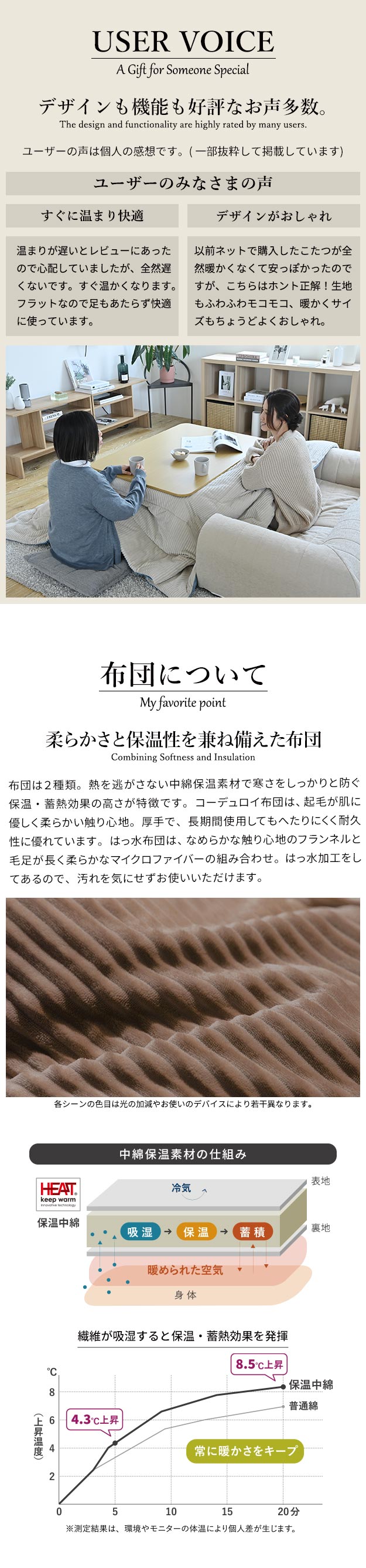 こたつ 折りたたみ 長方形 フラットヒーター折れ脚こたつ 〔フラットモリス〕 105x75cm+保温綿入りこたつ布団北欧柄 2点セット【送料無料】