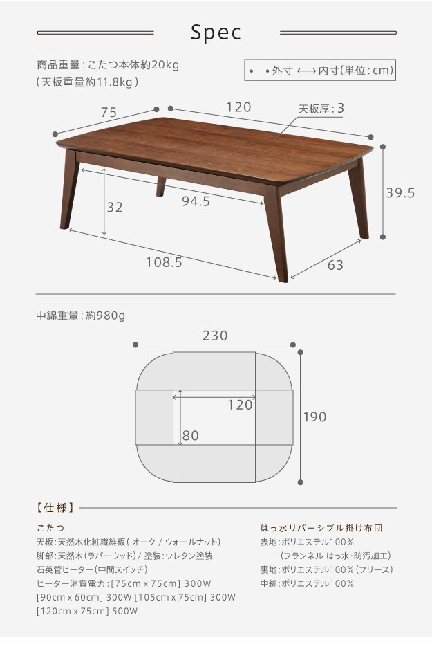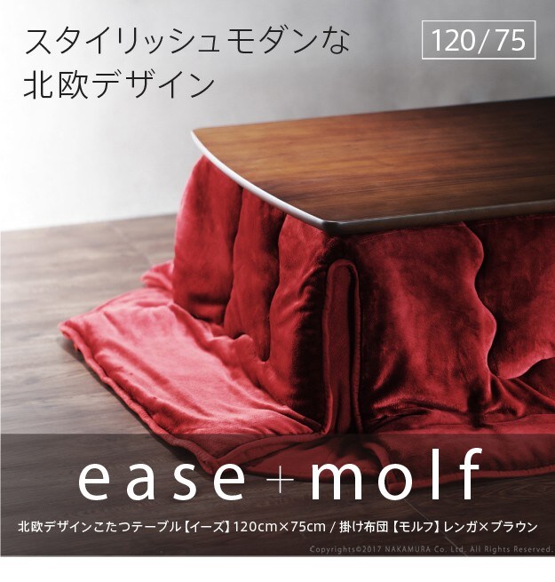 こたつ 北欧 北欧デザインスクエアこたつ 〔イーズ〕 120x75cm+はっ水リバーシブル省スペース 【送料無料】