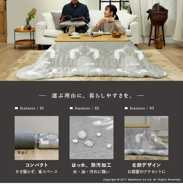 こたつ布団 北欧 長方形 保温綿入りこたつ布団 北欧柄タイプ 〔ヒートキートス〕 210x190cm 防汚加工 中綿 こたつ用掛け布団【送料無料】