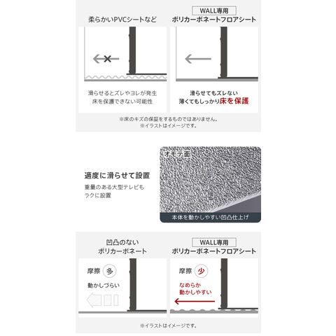 WALLインテリアテレビスタンドV3ロータイプコーナー兼用自立専用 ポリカーボネートフロアシート テレビ台 テレビスタンド 部品 パーツ フローリング 床保護パネル 床 シート 傷防止 キズ防止【送料無料】