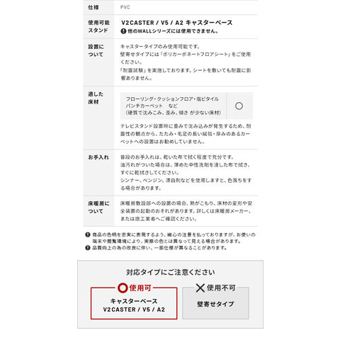 WALLインテリアテレビスタンド V2 CASTER/V5/A2対応キャスターモデル用床保護マット スクエアタイプ(Lサイズ) テレビ台 テレビスタンド 部品 パーツ フローリング 床保護パネル 床 シート【送料無料】