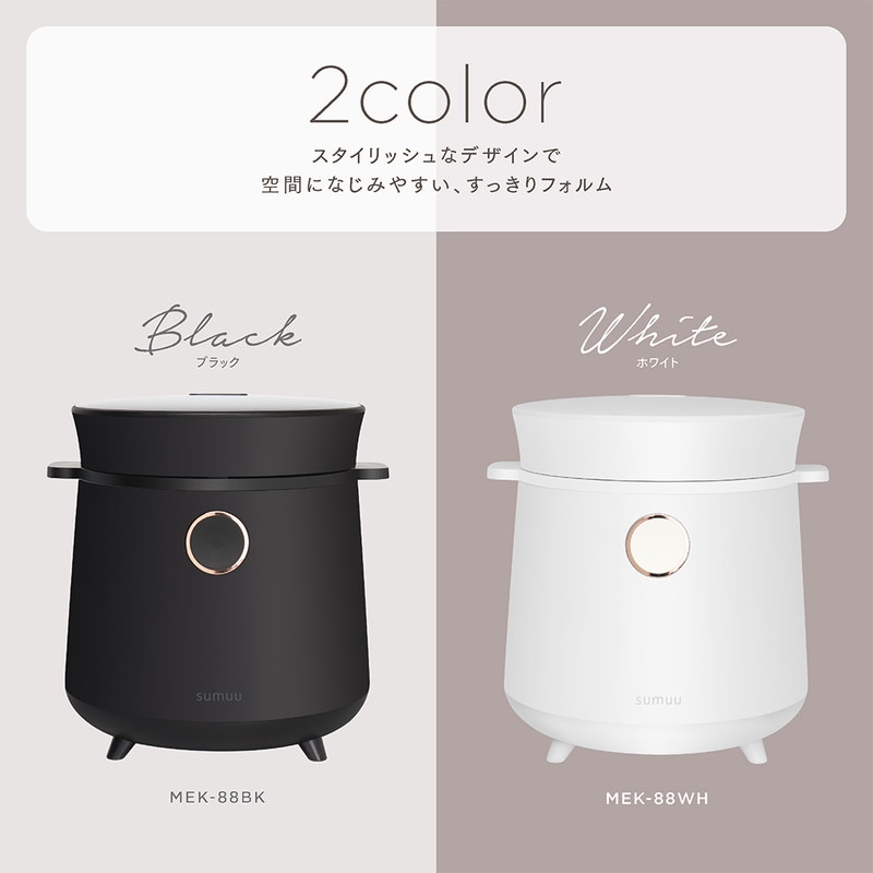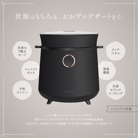 sumuu スムー マルチライスクッカー リシェフ MEK-88 2.5合 炊飯器 お米 ごはん ご飯 早炊き タッチパネル 内蓋取り外し 玄米 ヨーグルト ケーキ レシピブック付 小型 軽量 コンパクト【送料無料】