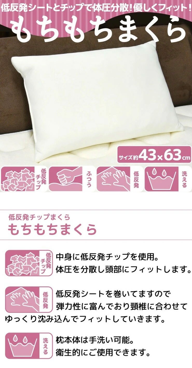 中身に低反発チップを使用してますので体圧を分散して頭部にフィット致します。