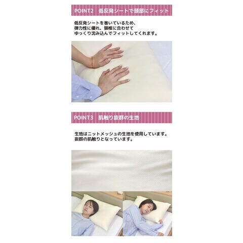 側生地に肌技りの良いニット生地を使用した低反発枕