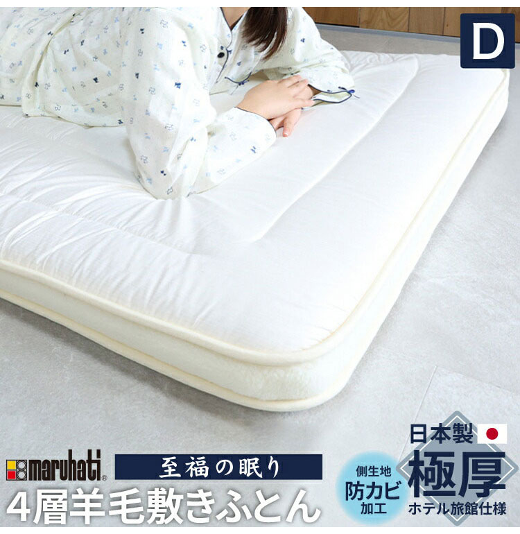 至福の眠り 丸八真綿 4層 羊毛 敷き布団 ダブル 日本製 マルハチ 布団 マットレス ベッド 敷き 国産 極厚 プロ用寝具 夏 除湿 羊毛敷布団 ホテル 旅館 厚い おすすめ 寝具 ふかふか【送料無料】