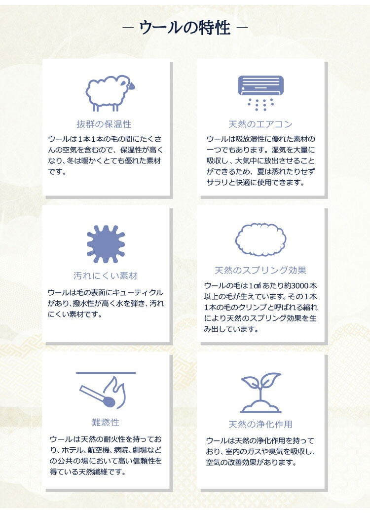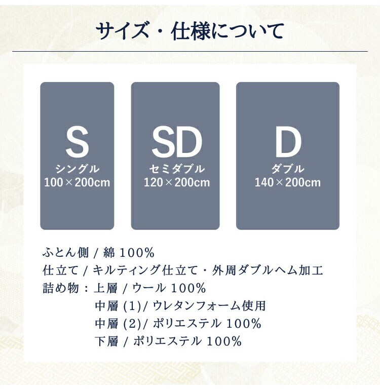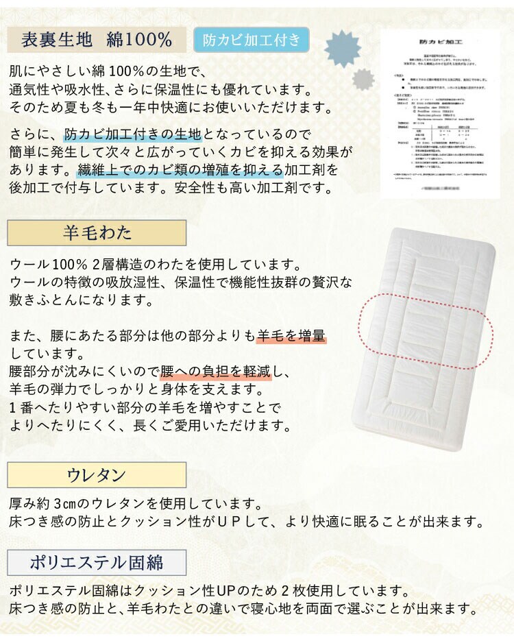 詰め物:上層/ウール100%