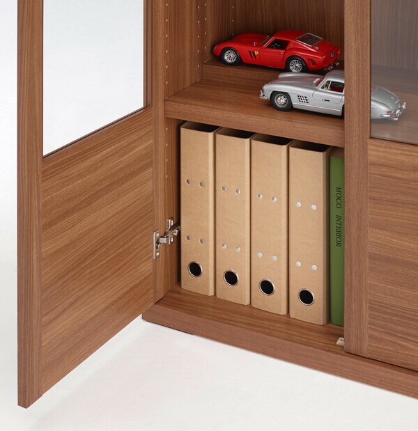 同じ幅のローチェストをラインナップし、「書棚+ローチェスト」の一体型収納を作り出すことができる。