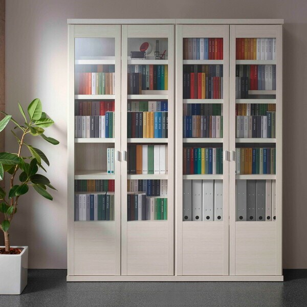 コミックシェルフの収納力と、ガラス扉の美しさを両立した書棚。。