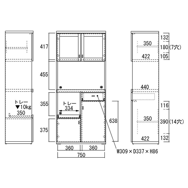 ●棚板耐荷重:10kg