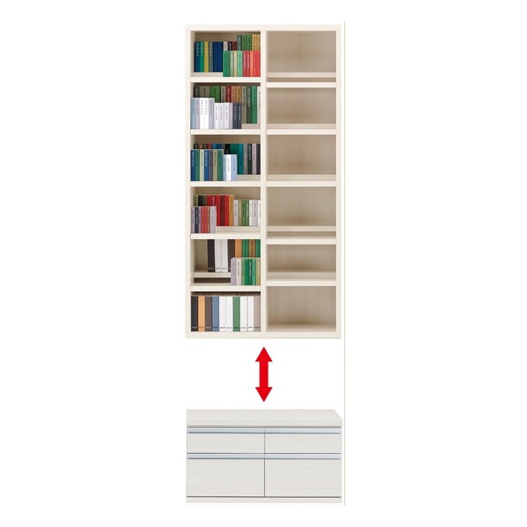 ●用途に合わせて別売りの書棚下台用のローチェストと上下連結して使用可能です