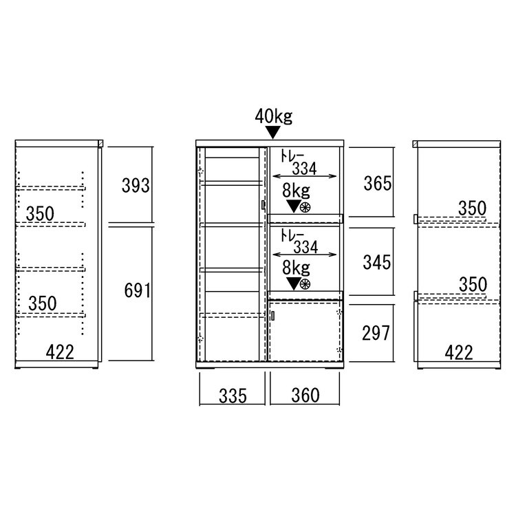 ●棚板耐荷重:10kg
