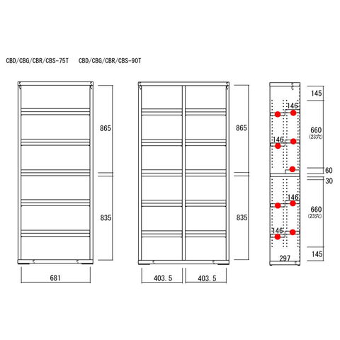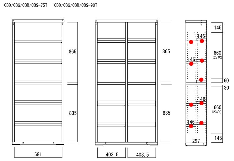 ●棚板は3cmピッチの可動棚板