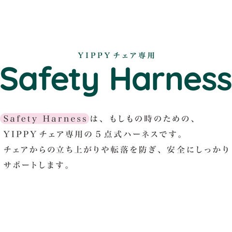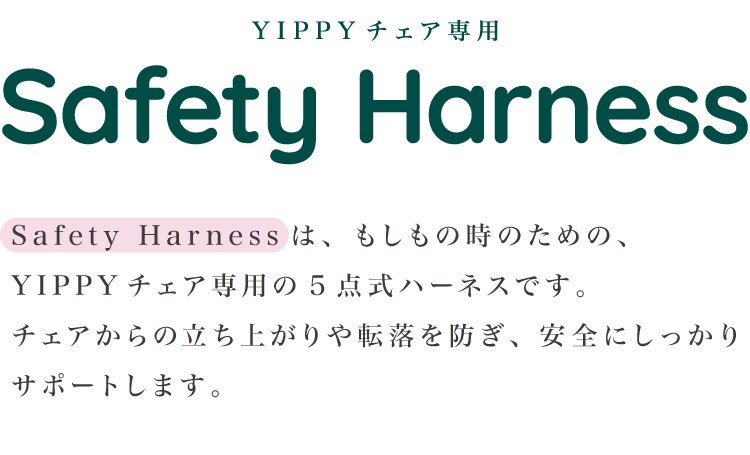 もしもの時のために。イッピー専用の5点式ハーネスです。
