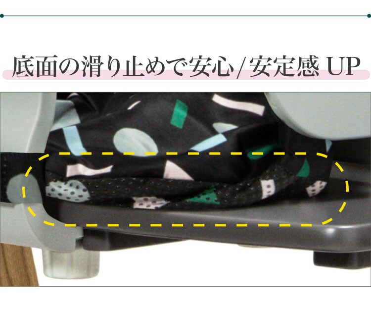 座面シートに接する部分には滑り止めが付いているので安定感もアップし安心です。