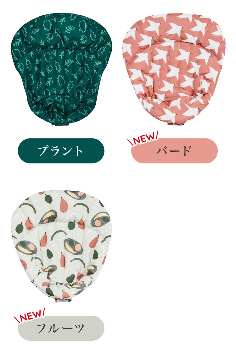 より快適な座り心地のためのクッション。生後6か月頃のお子さまの首回りからお腹まわりまでしっかりサポートします。