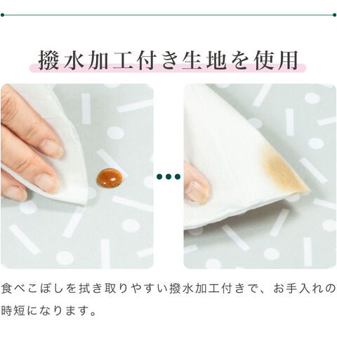 食べこぼしを拭き取りやすい撥水加工付きで、お手入れの時短にも。