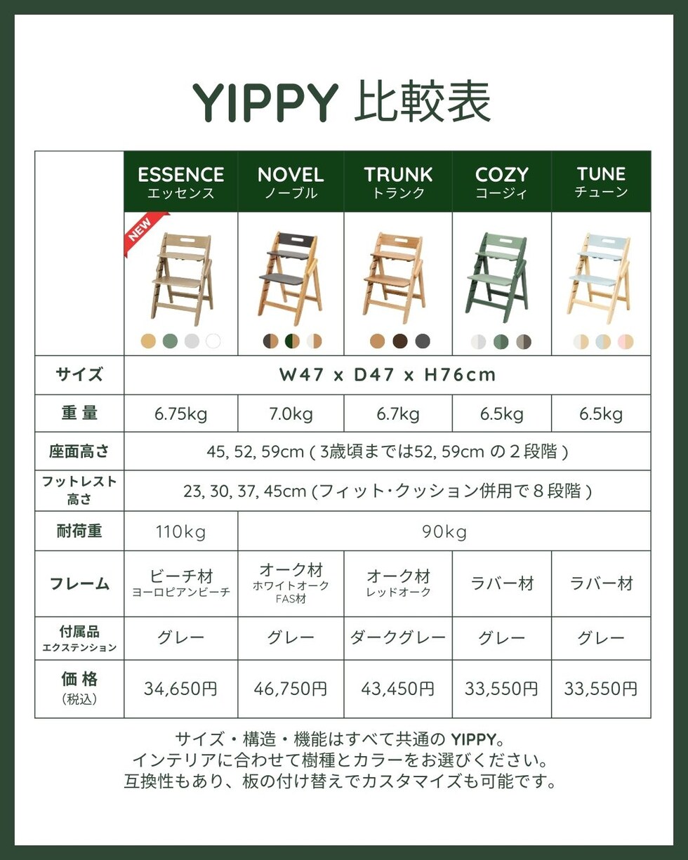moji モジ ベビーチェア イッピー ノーブル YIPPY NOVEL オーク材 ドイツ生まれのハイチェア 折りたたみ ハイチェア キッズチェア ダイニングチェア 高さ調節 子供椅子 赤ちゃん イス 3年保証【送料無料】のレビュー