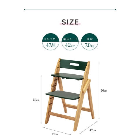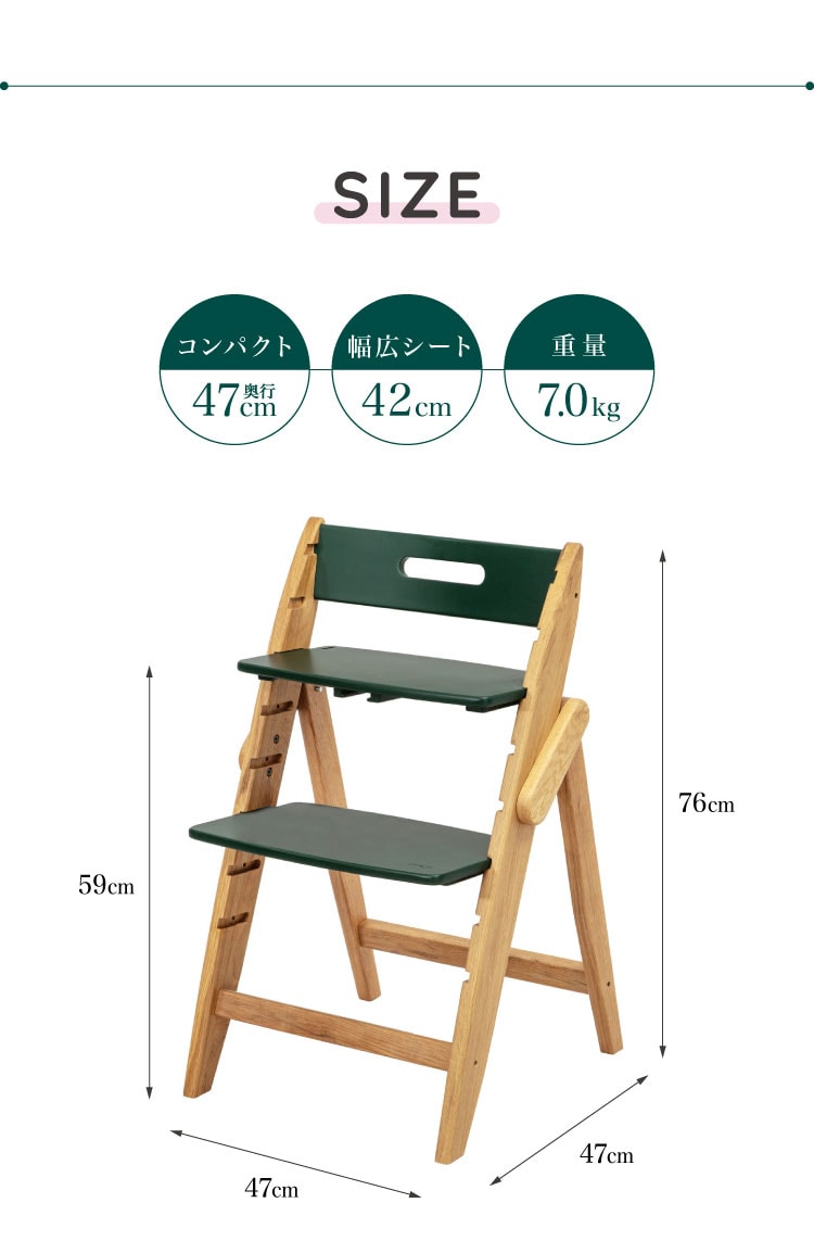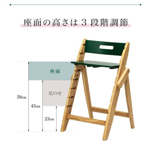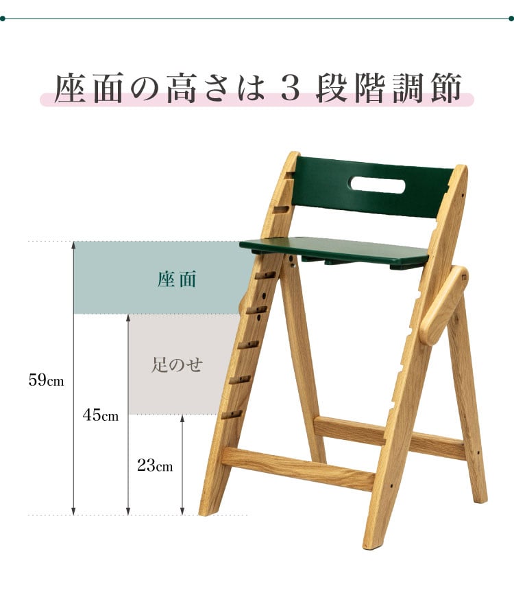 座面高:45cm~59cm(上から5番目~3番目の溝)