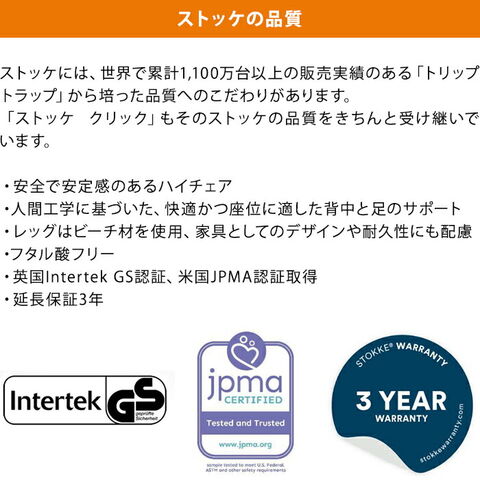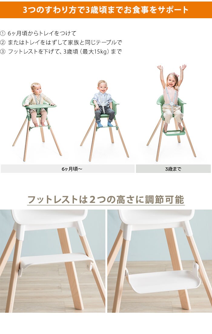 | ・トリップトラップにインスパイアされた北欧家具にピッタリのシンプルなデザイン ・フタル酸フリーのビーチ材を使用。 ・人間工学に基づいたデザインでしっかり座れる。 |