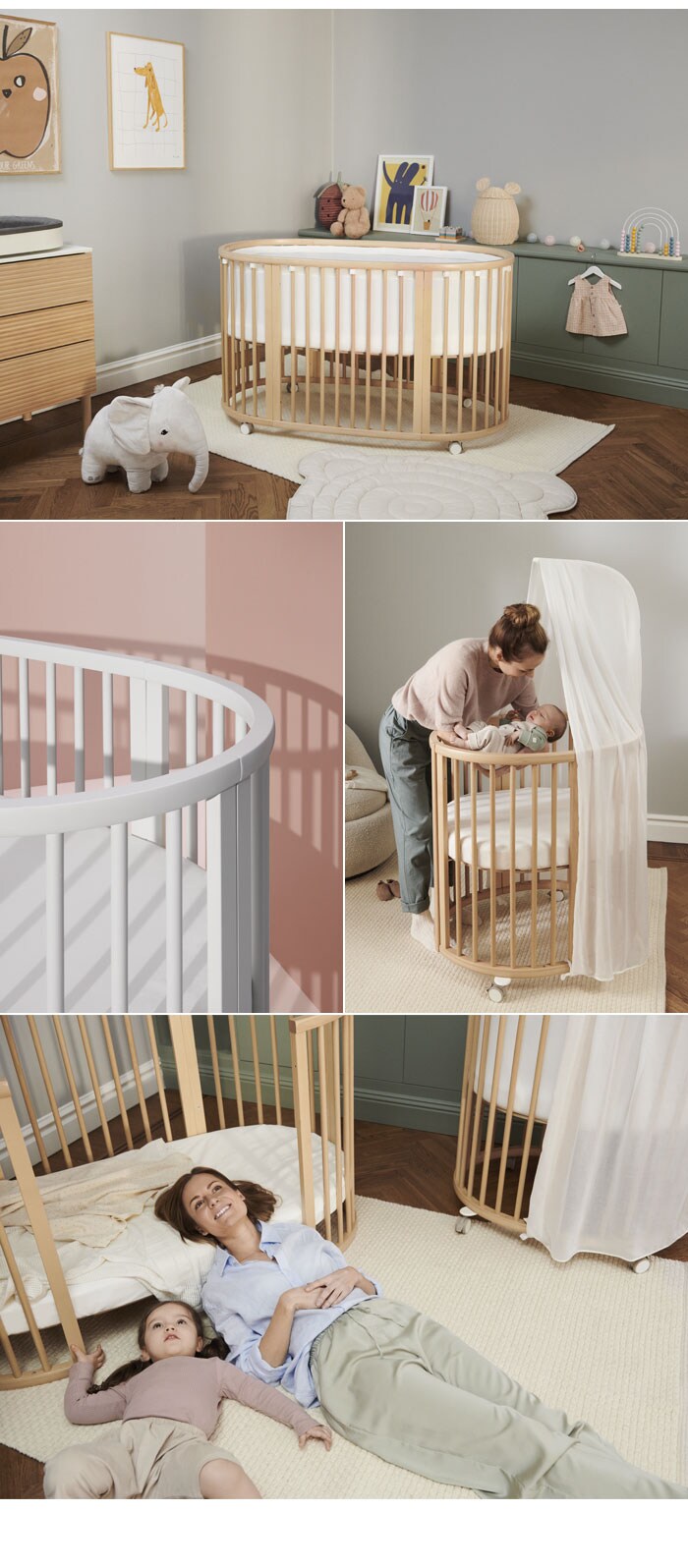 スリーピーベッドは、ストッケ製品の開発コンセプト「親子の絆を深めるデザイン」に基づき、高さ調節可能で、部屋から部屋への移動が簡単なキャスター付きで、子どもの成長に合わせて大きくなるベッドとして開発しました。